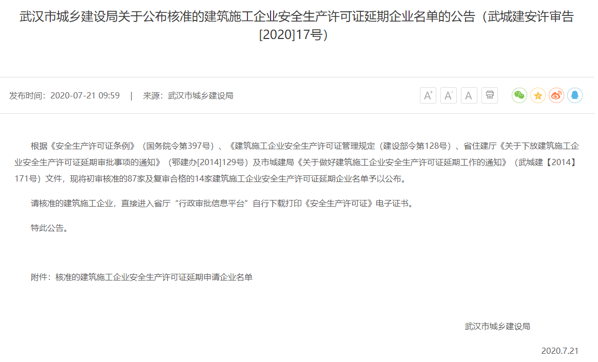 2020年7月21日,湖北興屹工程技術有限公司安全生產(chǎn)許可證順利通過了湖北省住